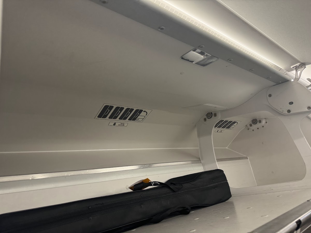 This was an older 737-800. Overhead capacity is not generous. Unlike newer aircraft that allow bags to be loaded vertically, these bins fill quickly. To make matters tighter, the first two overhead bins above row 1 were already closed, filled with aircraft equipment. That left only a handful of usable spaces in the forward cabin.