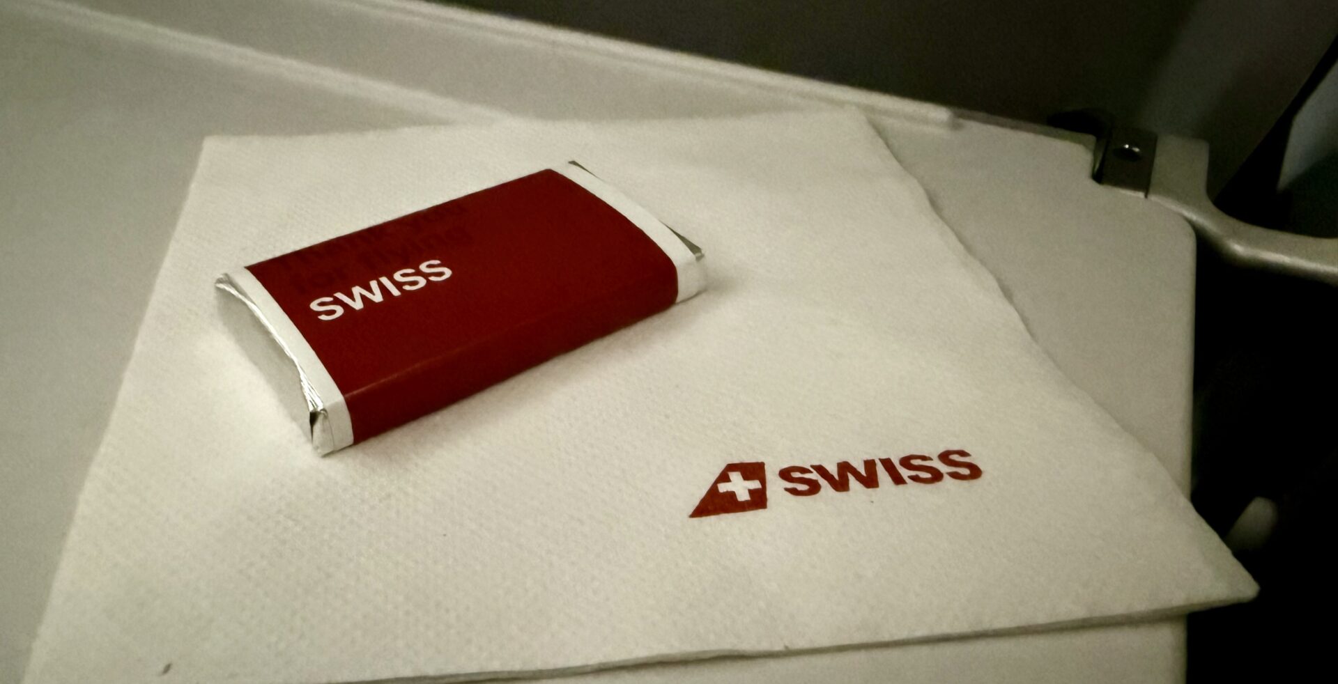 We were seated in row three, in a quiet cabin with several rows left empty. The SWISS A320neo Business Class seat is exactly what youโ€™d expect: a standard European economy seat with the middle blocked off. This design dates back to the 1980s when European airlines wanted maximum flexibility, and SWISS has stuck with it since its launch in 2002. The seats were slimline and functional, but a little on the hard side. The one real drawback was the tray table. It’s small, especially when the person in front reclined their seat, which nearly sent my drink flying.