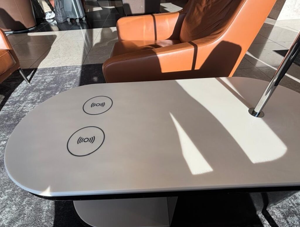 The lounge provided fast Wi-Fi, easily handling streaming and video calls without interruption. There were power outlets, wireless charging pads and USB ports at almost every seat, making it easy to recharge devices or get work done. If you needed a quieter spot, the back corner of the Brasserie doubled as a makeshift workspace.